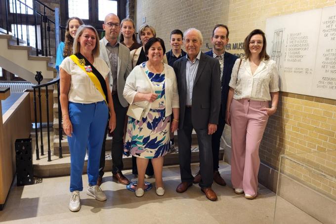 De jubilarissen kregen twee zonen. Jurgen (45) is getrouwd met Ann Goemaere en Birgen (41) trouwde met Kaat Cuveele. Er zijn drie kleinkinderen: Ferre, Nore en Wout. “We houden van korte reisjes maken, verzamelen oude postkaarten, genieten van onze tuin en genieten van het leven”, besluiten de jubilarissen. Hubert en Sonja werden samen met hun familie ontvangen in het stadhuis door schepen Emmily Talpe. (foto EG)