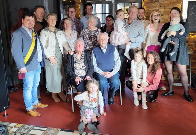 Later verhuisden ze naar de Tuinwijk, want er kwam gezinsuitbreiding: Pascal. Toen alle kinderen het huis uit waren, besloten ze om hun huis te ruilen voor een appartement op het Zaalhof waar ze tot vandaag nog genieten van hun welverdiende pensioen. Jacques en Jacqueline hebben inmiddels vier kleinkinderen: Jeroen, Lieselot, Jolien en Dries. Er zijn ook al vijf achterkleinkinderen: Marie-Lou, Anna-Lou, Lily-Rose, Gaston en Théo. De jubilarissen en hun familie kregen het bezoek van schepen Valentijn Despeghel. (foto EG)