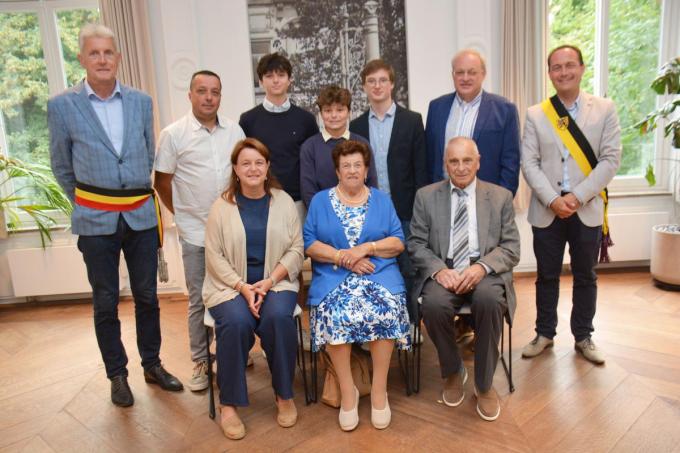 Roland Lootens en Georgette Lannoo uit Meulebeke en hun familieleden werden ontvangen in het kasteel Ter Borcht door burgemeester Luc Vannieuwenhuyze en schepen Vincent Byttebier naar aanleiding van hun diamanten jubileum.