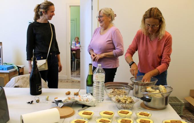 “Het voelt goed om van start te kunnen gaan”, vertelt Martine Slosse. “We richten ons in eerste instantie op alleenwonende 65-plussers. Bij 31 mensen hebben we een uitnodiging in de bus gestoken. Tien van die mensen zijn hier aanwezig. Met een deel van hen hebben we samen gekookt en afgeruimd en allemaal hebben we samen gegeten en genoten. In de toekomst willen we graag ook andere doelgroepen verwelkomen. Omdat we een nieuwe vereniging zonder startkapitaal zijn, hebben we op 11 juli een koud buffet georganiseerd. 77 mensen zijn ons toen komen steunen. En we hebben bij Cera een subsidieaanvraag gedaan. We kregen 1.500 euro en kochten daarmee een koelkast, oven, mixer, vleesmes en weegschaal die andere verenigingen ook mogen gebruiken.”