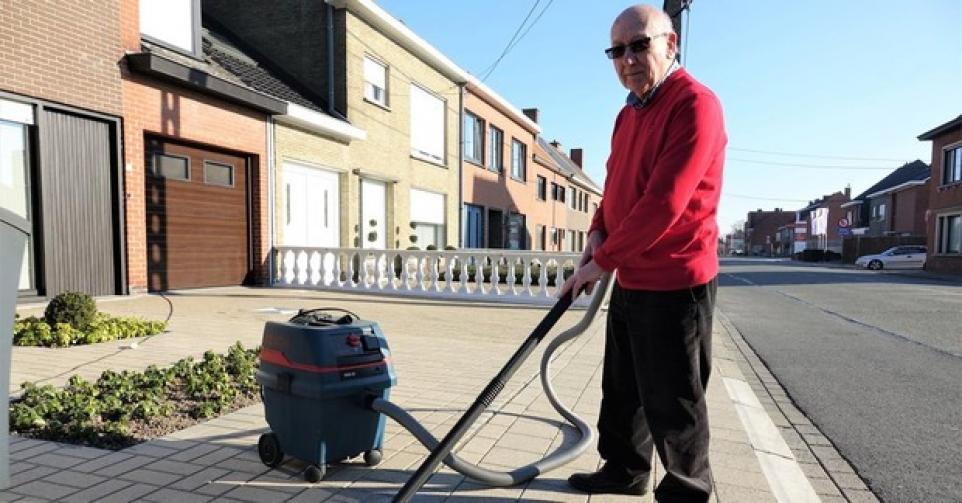 Even verderop in de straat heeft de buurman van Eddy een beter idee, Jacques Teirlinck haalde zijn stofzuiger boven om de oprit roetvrij te maken. “Die roetdeeltjes zijn allemaal glasvezel, als je ze probeert op te vegen is de wind er direct mee weg”, verklaart hij het eerder komische zicht. Ook Jacques schrok bij het opstaan en vernam het nieuws uiteindelijk via de radio.