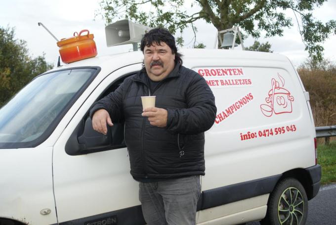 Billy Nollée (57) is een goed gekende figuur in de streek. Samen met zijn vrouw Christel Dewitte hield hij in Alveringem jarenlang de cafetaria van sportzaal Rethorica open. Maar in 2017 besliste Billy om iets anders te gaan doen. “Ik ben begonnen met de crèmekarre”, vertelt hij. “In de zomer rijd ik de hele streek rond met ijs: doorheen Alveringem en al haar deelgemeenten, Houtem, Beauvoorde, Lo, Pollinkhove en nog een avondronde in Adinkerke. Ik ben zeven dagen op zeven onderweg, het is meer dan een fulltime job. Dit jaar heb ik tot half oktober ijs verkocht, maar in de winter heb ik uiteraard geen werk. Na wat nadenken besloot ik om een ronde met verse soep te doen.”