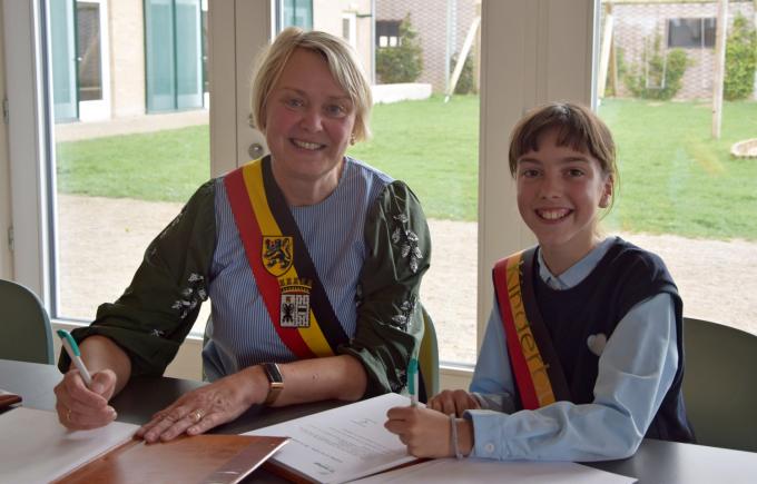 Fem Wallyn (11) uit Pollinkhove werd in september verkozen tot allereerste kinderburgemeester van Lo-Reninge. Ze draagt nu al drie maanden de burgemeesterssjerp.