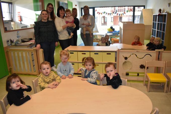 Twintig jaar lang baatte Martine Rivière (61) haar kinderdagverblijf ‘t Ballonnetje/babyland uit op de Markt van Langemark. “Maar die locatie was aan het verouderen en het werd steeds moeilijker om te voldoen aan de steeds strengere eisen van Kind & Gezin”, vertelt Martine. “Maar het was ook altijd mijn droom om een nieuwbouw te zetten. De vorige locatie was eigenlijk twee huizen die we zo goed mogelijk ingericht hadden voor de kinderen, maar dit pand werd speciaal gebouwd als kinderdagverblijf. Het is zalig om met een nieuwe lei te kunnen beginnen”, zegt Martine. “Alles is op maat gemaakt en volgens de regels van Kind & Gezin”, pikt dochter Jolien Sinnaeve (31) in. “We hadden een oud gebouw die we wel huiselijk konden inrichten, maar er waren ook wel risico’s bijvoorbeeld met de radiators waaraan de kindjes zich konden bezeren. Hier hebben we vloerverwarming, dus dat risico is meteen van de baan. Alles van houten materiaal – zoals de nieuwe bedjes – is van Hageland Educatief, een firma die zich toespitst op kinderdagverblijven. Er hangt een grote kostprijs aan vast, maar dat hebben we wel over voor de veiligheid en het comfort van de kindjes. Het is hier ook veel rustiger. Vroeger waren er drie groepen, nu zijn er twee kleine groepjes. We hebben wel onze capaciteit moeten aanpassen van 34 naar 25 kindjes.” De bouwwerken verliepen wel niet altijd van een leien dakje. “Normaal ging de opening voor november 2021 zijn, maar de werken liepen wat vertraging op”, zegt Martine. “Maar ik moet wel zeggen dat Hyboma enorm haar best heeft gedaan. Het was de eerste keer dat ze een kinderdagverblijf bouwden, dus dat was een uitdaging voor hen. Ook voor mij was het een grote investering, van om en bij 600.000 euro. En dat is alleen maar voor het gebouw, de meubels en toestellen niet inbegrepen.”