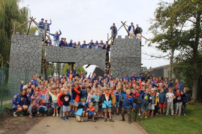 “Dit jaar introduceren we ook de Dwergenban, een ban voor kinderen uit het derde kleuter. We merkten dat de vraag steeg en dat deze zeer gemotiveerde kinderen ook een plaats verdienen binnen KSA Veurne. Na telling waren er 230 kinderen op de startdag, een gigantisch succes dus. De sjorring op de achtergrond is de poort van Zweinstein, want het thema was dit jaar Harry Potter.