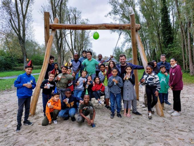 “De vraag kwam er al even van de kinderen om hun speelzone uit te breiden. Het speelbos met boomhut werd wel veel gebruikt, maar vooral tieners misten nog iets. Een plek om samen te zitten, bijvoorbeeld het vogelnest, en een element om te sporten, vandaar het sporttoestel. Eigenlijk waren we van plan om te wachten tot na de renovatiewerken van de woonwijk wat verderop, maar dat kan soms jaren duren en op een kinderleven is dat heel lang”, zegt Bieke Vertriest van Speelruimte (JC Tranzit).
