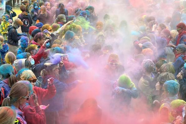 Izegem / Jeugd Izegem / Jeugd Jongeren bekogelen elkaar met zakjes kleurpoeder op Dag van de Jeugdbeweging 20 oktober 2025