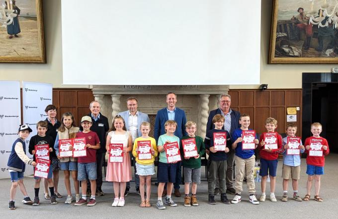 De kinderen uit het derde en vierde leerjaar namen met trots hun welverdiende diploma van de Techniekacademie in Blankenberge in ontvangst.