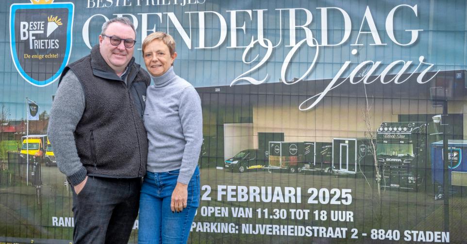 Geert Spillebeen (57) richtte 20 jaar geleden Beste Frietjes op. Twee decennia later is Beste Frietjes uitgegroeid tot een bedrijf dat negen foodtrucks op de baan heeft. Beste Frietjes ging van start toen een klant van het café dat Geert toen uitbaatte vroeg of hij frietjes wilde bakken op een feestje. “We trokken daar met drie man naartoe en bakten frieten voor 70 man in twee kleine keukenfrituurpotjes”, vertelt Geert. “De dag nadien kocht ik een beter frituurtje. Iets later volgde een frietkotje. Momenteel hebben we negen foodtrucks op de baan. Ik was indertijd in de regio de pionier van de mobiele frituren. Ondertussen zijn we uitgegroeid tot een van de grotere bedrijven in West-Vlaanderen op dat vlak.” (BCH)