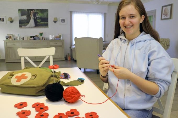 Een bezoek aan Tyne Cot Cemetery in Zonnebeke bracht Lauranne Eggermont (16) op een bijzonder idee. Ze wil met Wapenstilstand in 2028 aan ieder oorlogsgraf, zo’n 12.000, een eigen gehaakte klaproos of poppy plaatsen. Dit jaar plaatste ze op het militair kerkhof in Heestert al zo’n 180 poppies. “Ik ben getroffen door het groot aantal gesneuvelden die er een laatste rustplaats kregen, maar vooral dat er zoveel mensen liggen die niet ouder zijn dan 24 jaar. Daar wilde ik iets voor doen. Op het artikel in KW mocht ik veel positieve reacties ontvangen. Veel mensen willen helpen met het haken, maar ik wil ze allemaal alleen maken. Dit zijn er tot november 2028 zo’n 70 per week. Mijn nominatie is geweldig nieuws, die ik met veel plezier aanvaard.” (GJZ)