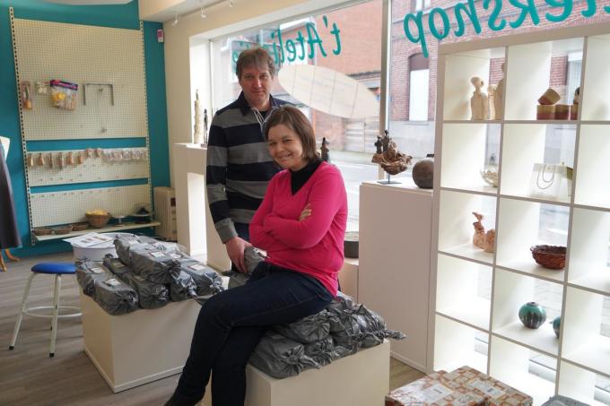 De knusse winkelruimte in de Tieltstraat 3 in Meulebeke is sinds enkele weken ingenomen door keramiekshop ‘t Ateliertje, het geesteskind van Nathalie Vander Bauwhede en John Eeckeloo.