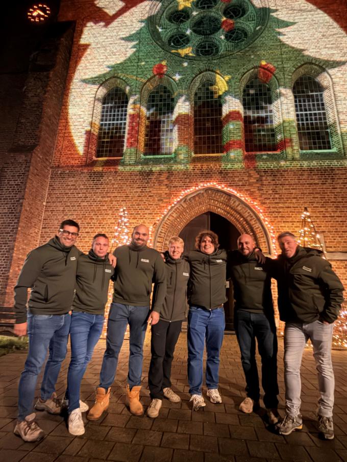 Voor het derde jaar op rij kan het comité ook een kersttafereel projecteren op de gevel van de kerk. “Dat konden we drie jaar geleden aankopen dankzij het burgerbudget van de gemeente, waarvoor we een succesvolle aanvraag gedaan hadden. Na de kerstman op de ooievaar vorig jaar gebruiken we nu terug de afbeelding van het eerste jaar.”