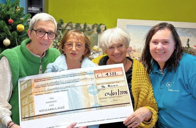 Marleen Maes, de vroegere uitbaatster van speelgoedwinkel Haan op stelten, haalde samen met een buurvrouw 1.377 euro op ten voordele van de vzw Wens Ambulancezorg, een organisatie die de laatste wensen van palliatieve mensen in vervulling laat gaan. “Enkele maanden terug hoorde ik hier voor het eerst over via mijn buurvrouw Kathleen. Met veel engelengeduld knutselde zij honderden kerststukjes in elkaar om dit goede doel te steunen”, vertelt Marleen, die zelf haar vroegere winkel ter beschikking stelde en er enkele sfeervolle kerstmarktjes hielp organiseren. Die brachten uiteindelijk het mooie bedrag van 1.377 euro op. “Met ook heel veel dank aan Irene Wauters, die ons gratis haar zelfontworpen kerstkaartjes schonk, en aan alle gulle schenkers van kerstgerief”, aldus Marleen. (WK/foto WK)