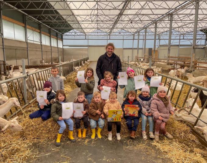 Na het voorlezen nam boer Geert iedereen mee om de stallen te tonen. Er was net een vers kleintje geboren. Geert toonde ook de melkstal. De kinderen mochten toen nog namen kiezen voor de jonge geitenbokjes. Ze werden zo genoemd: Max, Alladin, Sam, Emiel, Fifi, Aloïs, Krakkie, Lorenzo, Jules en Boris.