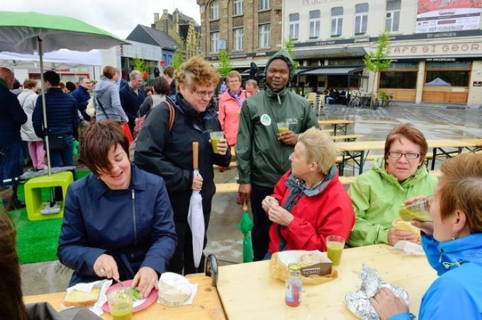 De solidariteitspicknick op het Stationsplein te Roeselare kreeg af te rekenen met felle regenbuien, maar dat kon deelnemers en organisatoren niet deren. De gratis soep smaakte, de zelf meegebrachte boterhammen evenzeer.