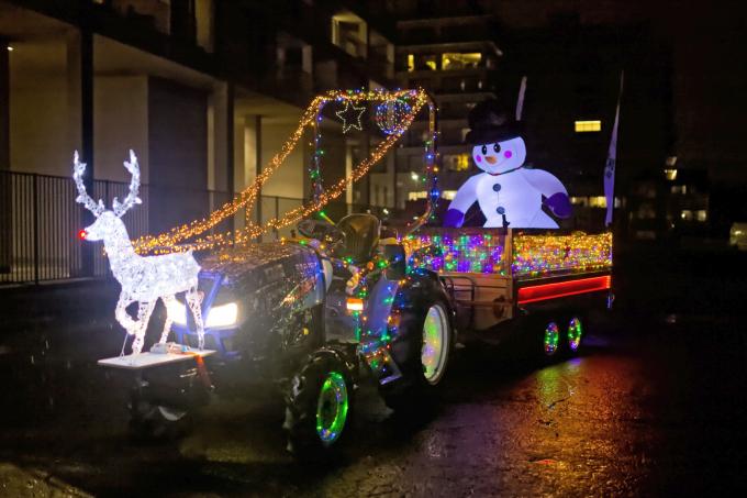 Waregem Wintert telt dit jaar een gloednieuwe extra publiekstrekker. De Landelijke Gilden van Waregem sloegen zaterdag de handen in elkaar voor een indrukwekkende verlichte tractorenparade. De magische kerststoet trok als een kleurrijke colonne door de straten. De trekkers vertrokken om 18 uur aan TVH. Via Nieuwenhove ging het richting Desselgem en zo verder naar Beveren-Leie en Sint-Eloois-Vijve. Rond 20 uur gaf de colonne kleur aan het Waregemse centrum. De finish lag op de hippodroom. Het initiatief lokte heel wat mensen de straat op. Alle informatie over de activiteiten van de komende eindejaarsperiode is terug te vinden via www.waregemwintert.be. (LV)
