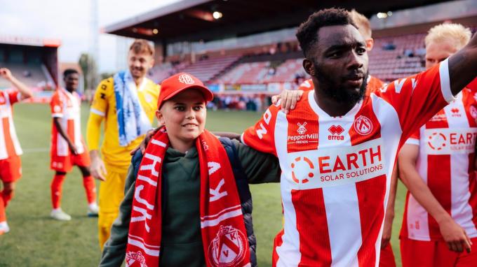 “Op dat moment was het nog niet duidelijk of hij de eerste thuismatch zou kunnen bijwonnen. Normaal staat hij met zijn vrienden in de staantribune, nu nam hij met zijn familie plaats in de hoofdtribune”, gaat Bauwe verder. “Na de overwinning ging ik César halen en mocht hij mee het veld op met de spelers om de spionkop te groeten.”