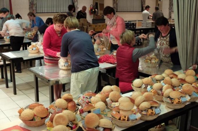 Vanaf 4 uur zondagmorgen werden 1016 ontbijtmandjes klaargemaakt om tegen 7 uur verdeeld te worden in de deelgemeenten van Groot-Veurne.