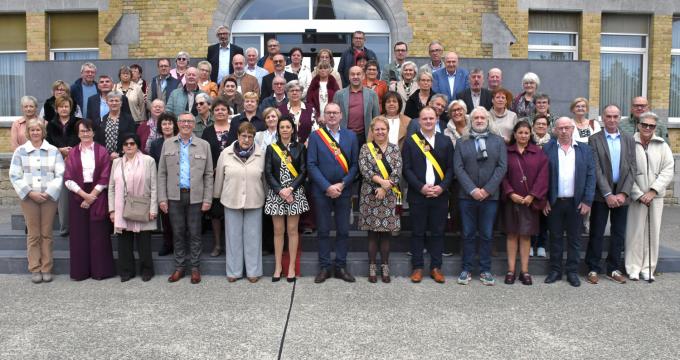 Op zondag 19 oktober verzamelden de 65-jarigen voor een feestelijke bijeenkomst. Burgemeester Lieven Vanbelleghem verwelkomde hen op het gemeentehuis en deelde enkele leuke anekdotes over de jarigen die inmiddels de pensioengerechtigde leeftijd hebben bereikt. Op de groepsfoto poseren maar liefst vijfennegentig 65’ers op de trappen van het gemeentehuis, omringd door burgemeester Lieven Vanbelleghem, schepenen Marleen Soete, Thijs Supply en Valerie Deraeve, gemeenteraadsvoorzitter Eddy Vanacker, gemeenteraadsleden Doris Dereyne en Kathy Top, en de leden van het organiserende comité: Hilde Top, Ingrid Huyghe, Christine Vanderriest, Christine Hoornaert, Carine Bruynsteen, Eddy Descamps en Ronny Jonckheere. (foto RB)