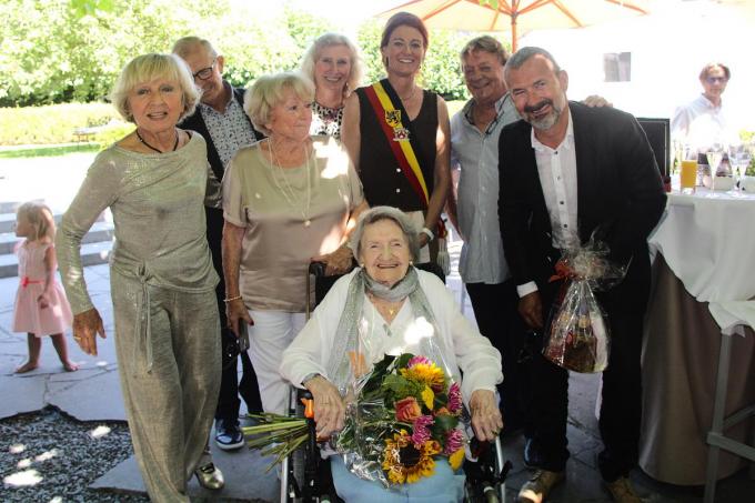 Burgemeester Ruth Vandenberghe ging langs bij Lauretta Verfaillie die haar 100ste verjaardag vierde in het Klokhof aan Sint-Anna in Kortrijk. De burgemeester verraste Lauretta met enkele geschenken en een grote tuil bloemen.