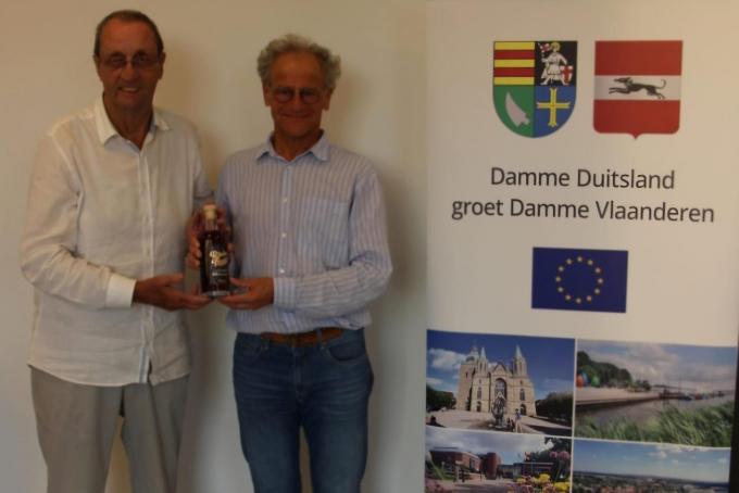 Tijdens de jongste bestuursvergadering van het verbroederingscomité tussen Damme en het Duitse Damme werd afscheid genomen van Lucien Barremaecker als voorzitter. Hij kreeg van zijn collega’s een fles Raubertrunk als dank voor zijn jarenlange inzet. Marc Dalle neemt voortaan de voorzittershamer over.