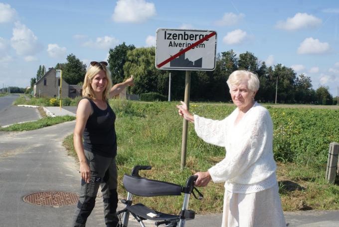 Al 60 jaar woont Maria Lehoucke in de Izenbergestraat in Leisele. Een nieuw bord voor de deur zorgt echter voor verwarring. “Door dat bord lijk ik plots op grondgebied Izenberge te wonen”, reageert Maria.