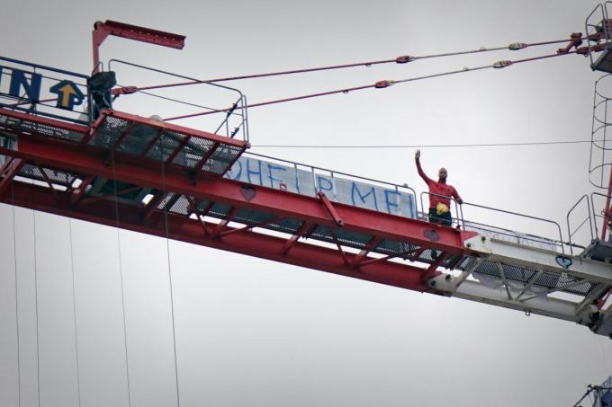 “Help me!” De woorden op één van de talrijke banners die bovenaan de werfkraan hangen, spreken klare taal. Maxime, een Fransman die het gros van zijn jeugd in Heule doorbracht, zit er al meer dan een week opgesloten en smeekt om hulp. De man, vader van twee dochters, kreeg zijn dochters na een slepend conflict met zijn ex-echtgenote al jaren niet meer te zien en vindt geen luisterend oor bij de overheid.