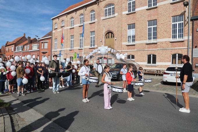 Onder een stralende zon palmden de leerlingen van basisschool De Horizon deze voormiddag de markt in om te trommelen voor vrede in de wereld. Maar ze hadden ook een duidelijke boodschap, die ze al zingend brachten vanop de kiosk: “Het begint bij jezelf, geef anderen een teken.” De eerste regels van het refrein van het lied dat Westhoekbard Yves Bondue speciaal voor deze gelegenheid heeft geschreven.
