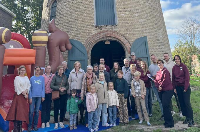 Afgelopen zondag vond op de molensite in de Weststraat de Dag van Sociaal Wonen plaats, meteen ook de officiële opening van de recent gerestaureerde molen en de molenaarswoning. De bezoekers kregen rondleidingen en konden nadien genieten van een gratis hapje en drankje. Voor kinderen was er animatie met een speelse zoektocht en een springkasteel. De opkomst was groot en de reacties waren uiterst positief. Ook de buurtbewoners gaven aan dat de site na jaren werken opnieuw toegankelijk en uitnodigend oogt. Vrijwilligers en medewerkers begeleidden de rondes, lichtten het erfgoed toe en wezen op de wooninvulling. Met deze opening kreeg de molensite een nieuw hoofdstuk, waarin wonen, erfgoed en ontmoeting elkaar versterken. (SVE)