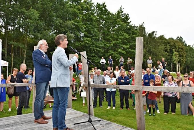 “De totale uitgaven voor de aangelegde speeltoestellen, grondwerken en natuurelementen, komen ongeveer neer op zo’n 300.000? . Voor het natuurspeelterrein in de Gavers kregen wij via de projectoproep ‘Natuur in je Buurt’ van het Agentschap voor Natuur En Bos een subsidie van 50.000?”, wist de gedeputeerde nog te zeggen aan de ruime publieke belangstelling. Ook burgemeester Alain Top (S.PA-Groen) was een gelukkig man met deze opening. We kunnen hier gerust spreken van het grootste natuurspeelterrein van West-Vlaanderen.