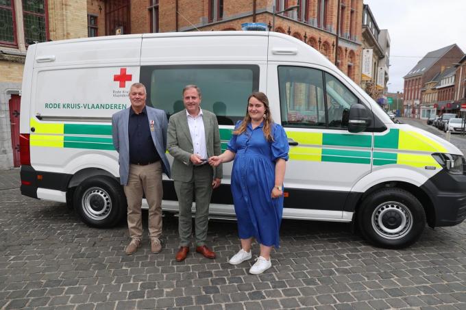 Voorzitter Sharon Boussery kreeg de sleutels overhandigd uit handen van burgemeester Christof Dejaegher. De wagen zal binnenkort ingezet worden voor de hulpverlening in de regio, en ook tijdens de bloedinzamelingen.
