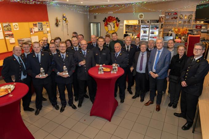 De brandweerlieden van brandweerzone Midwest post Aarsele verzamelden in hun kazerne voor hun jaarlijkse nieuwjaarsdrink. In aanwezigheid van meerdere prominenten maakte postoverste Wim De Vrieze van de gelegenheid gebruik om de brandweermannen te danken voor hun inzet van het afgelopen jaar en hen een voorspoedig 2024 toe te wensen. Nieuw gezicht was dat van Benny Bekaert die sinds 2006 lid is van het korps en sinds 1 januari het voorzitterschap van de vriendenkring overnam van Sam Vander Cruyssen, die ondervoorzitter werd. Op de agenda van de vriendenkring en het korps staan alvast het kermisaperitief, de jaarlijkse kaarting die uitbreiding krijgt met een dartstornooi en de jaarlijkse autowas. In 2023 werden ook enkele brandweerlieden bevorderd, de receptie was dan ook het moment om Glen Breydels, Rik Nieuwenhuizen, Maarten Tack en Bram De Wulf even in de bloemetjes te zetten. (WME/foto WME)
