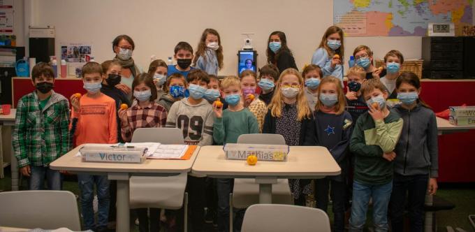 Het was een gezellig sfeertje op de school. Samen ontbijten in de klas is eens iets anders dan gewoon les volgen. Het is wel heel confronterend als je die jonge kinderen van tien jaar ziet binnenkomen in hun klas, het vijfde leerjaar. Ze hebben allemaal hun mondmasker aan en nemen plaats op hun bank.