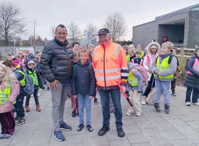 René Declercq (82), echtgenoot van Anna Dewaele uit de Olekenbosstraat, helpt vrijdag voor de laatste keer de leerlingen van basisschool Belgiek op een veilige manier oversteken aan het drukke kruispunt met verkeerslichten. Hij fungeerde 16 jaar lang als gemachtigd opzichter en werd hiervoor gehuldigd door directeur Bruno Lecluyse, de leerkrachten en leerlingen van de school. “Ik heb het altijd graag gedaan. Anders blijf je dat niet doen”, aldus René. “Als man en vrouw vormden jullie niet alleen een sterk team thuis, maar ook op straat: een prachtig voorbeeld van betrokkenheid en verantwoordelijkheidszin”, stelt men bij politiezone Gavers. “Wie ook interesse heeft om als gemachtigd opzichter ten dienste te staan, mag ons altijd contacteren.” (DRD)
