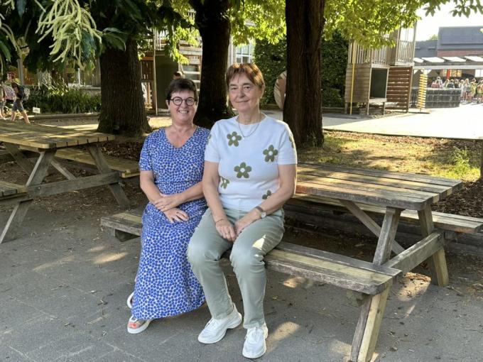 Toen Annemie en Karine, beiden geboren in 1963, afstudeerden als leerkracht, lagen de jobs niet dik gezaaid. Karine werkte eerst als ambulante leerkracht, daarna volgden interims tot ze haar stek vond in het derde leerjaar. “Voor ik in het onderwijs terechtkon, deed ik een beetje vanalles”, zegt Annemie. “Ik ben ook een tijd gaan poetsen tot ze in Gullegem iemand zochten om godsdienst te geven. Niet mijn droomjob, maar het was voltijds. Na een tijd gaf ik het zesde leerjaar, tot twee jaar terug. Nu ben ik ambulante leerkracht, ik eindig waar Karine begon.” (lacht)