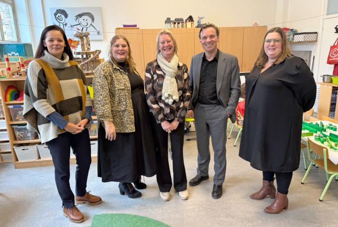 Basisschool Hemelsdaele in het centrum van Brugge rolde figuurlijk de rode loper uit voor Bruno Vanobbergen, directeur-generaal van het Katholiek Onderwijs. Hij was geïnteresseerd in de pedagogische werking van een basisschool met een diverse instroom en een internaat op dezelfde site. Hij bezocht uiteraard de wereldklas, waar anderstalige nieuwkomers gedurende een periode ondergedompeld worden in een intensief taalbad. Daarnaast was hij ook sterk geïnteresseerd in de visie van de school, die focust op een uitgebreide zorgwerking voor leerlingen die een extra duwtje nodig hebben, maar eveneens voor kinderen die bijkomende uitdagingen goed kunnen gebruiken. Miek Kemel, algemeen directeur van scholengroep SKOBO, was eveneens aanwezig om Bruno Vanobbergen te verwelkomen. (PDC/foto PDC)