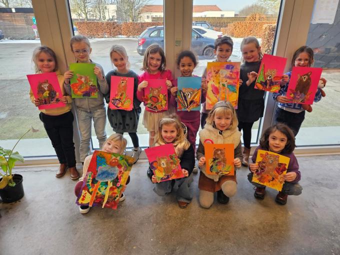 Tot en met vrijdag 14 februari loopt op de kunstmuur in het ontmoetingscentrum d’Iefte een tentoonstelling met werken van de leerlingen van de kunstacademie. “Dit keer staan onze jongste leerlingen van het eerste en tweede leerjaar in de schijnwerpers”, verduidelijkt lesgeefster Jente Verstraeten. “Ze maakten een beer die in zijn winterslaap gaat, met technieken zoals bister en pandakrijt. Onze ‘oudere’ leerlingen vanaf het derde leerjaar gingen aan de slag met de linotechniek. Na het ontwerpen en uitsnijden van hun creaties op lino brachten ze hun kunstwerk tot leven door het op T-shirts te drukken. Met geweldig resultaat om trots op te zijn… (DRD/foto DRD)