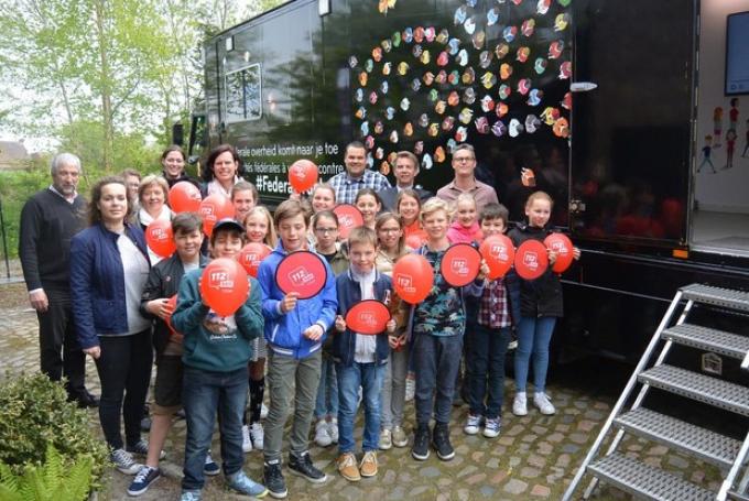 Tussen 18 april en 18 mei gaat de Federale Overheidsdienst Binnenlandse Zaken met de Federal Truck op tournee door België. Het thema is de 112 kids-campagne, waarbij kinderen leren hoe ze levens kunnen redden door het nummer 112 te bellen. De leerlingen van negen Belgische lagere scholen zullen na het bezoek het noodnummer 112 alvast niet meer vergeten en nog beter weten wat je moet zeggen wanneer je een noodnummer belt. Vandaag was het Vrije Basisschool De Vaart uit Moerbrugge die als enige West-Vlaamse school de bus mocht ontvangen. Naomie en Pieterjan van het VRT-programma De Noodcentrale, dat vanavond voor de laatste keer wordt uitgezonden om 20.37 uur, leerden twaalf klassen van de school op een interactieve manier hoe het moet.