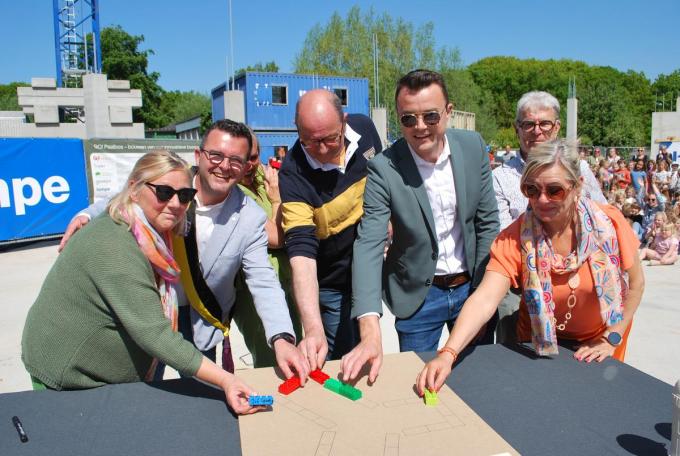 Op maandag 28 april om 14 uur werd in aanwezigheid van alle kinderen en personeelsleden van de school en schepenen Matthijs Goderis en Olivier Strubbe de eerste steen gelegd van de nieuwbouw van basisschool Paalbos in de Gemeneweideweg Zuid in Assebroek.