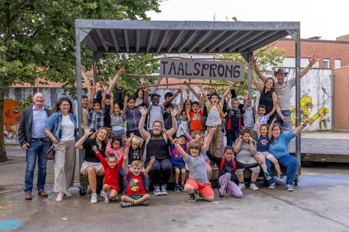 De elfde editie van De Taalsprong, waaraan 26 kinderen deelnamen, zit erop. Dat is een zomerschooltje voor kinderen uit de lagere school die thuis weinig tot geen Nederlands spreken. Met het taalkamp zet een werkgroep van de stad in op taalwinst voor kinderen die daar nood aan hebben. “Met een week vol activiteiten, dicht bij de start van het schooljaar, creëren we een taalbad waardoor jongere kinderen hun Nederlandse woordenschat uitbouwen en sneller zullen durven spreken in de klas”, legt Lisa D’Hondt uit. Zij nam de fakkel over van Jan Vandenberghe als hoofdcoördinator van het kamp. Tijdens het kamp bezoeken de kinderen locaties in Tielt. Zo maakten de kinderen een reisje rond de wereld in sporthal De Ponte, bezochten ze de Stedelijke Academies, mochten ze even plaatsnemen in een echte politiecombi en gingen ze langs bij dorpsboerderij Nest in Schuiferskapelle. Vrijdag werd De Taalsprong afgesloten met een toonmomentje en een groepsfoto in de Godelieveschool. (SV/foto WME)