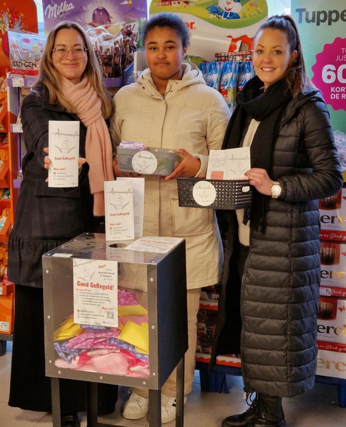 “We hopen dat het project ervoor kan zorgen dat alle meisjes of vrouwen gratis maandverband en tampons in alle scholen ter beschikking krijgen en dat Goed GeRegeld binnenkort een begrip wordt”, zeggen Petra Surmont en Sophie Druwel. “We vragen aan alle Nieuwpoortenaars om ons te helpen dit mee te realiseren. We willen het voorbeeld in Schotland volgen: daar begon het ook in de scholen. (In Schotland moeten sinds augustus 2022 alle scholen en overheidsinstellingen gratis tampons en maandverband ter beschikking stellen; het is daarmee het eerste land ter wereld, red.) Graag hadden we, over de onderwijsnetten heen, alle scholen hierbij betrokken. Het project loopt nu al in alle scholen van onze scholengroep. Later dit schooljaar breiden we uit naar andere provincies. In september testte onze zusterschool Go! Atheneum Veurne het concept uit. Ondertussen heeft die school financiële steun gekregen van het stadsbestuur en bedrijven en organisaties in de regio. We zouden het enorm fijn vinden mochten alle mogelijke instanties in de regio Nieuwpoort ons ook hierbij ondersteunen en helpen.”