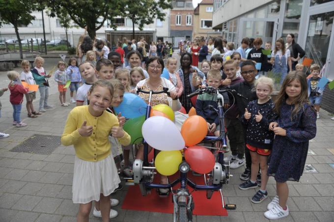 Op donderdag 1 september keert juf Christien Van Robays niet meer terug naar gemeenteschool De Wingerd in Ingelmunster, want ze is met pensioen. Op de laatste schooldag werd ze door de directie, leerkrachten en leerlingen passend uitgewuifd.