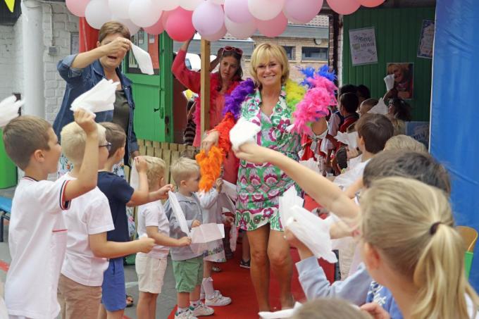 Woensdagvoormiddag werd het pensioen feestelijk gevierd van de kleuterjuf. “Na een loopbaan van 40 jaar als kleuterjuf mag zij nu, meer dan verdiend, van haar pensioen genieten”, vertelt directeur Chiara Claus.