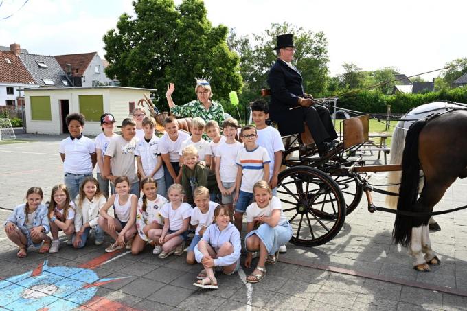 Vrijdag 28 juni was voor Sabine Himpens (61) haar laatste schooldag in de Sint-Pieterschool in Oostkamp. Na 41 jaar lesgeven is het tijd voor een nieuwe fase in haar leven en een verdiend pensioen. Ze was koningin voor één dag en werd uitgezwaaid door meer dan 500 leerlingen.