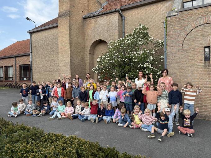 De kerk wordt momenteel door de basisschool gebruikt als sportzaal en polyvalente ruimte. Door het groeiend leerlingenaantal heeft de school immers behoefte aan nieuwe lokalen. Het is de bedoeling dat op termijn op de site een eigentijdse campus uitgebouwd wordt die tegemoet komt aan de noden van beide scholen. Om de aankoop te vieren, verzamelde een grote groep leerlingen van basisschool De Zessprong aan de ingang van de voormalige kerk. (PDC/foto PDC)