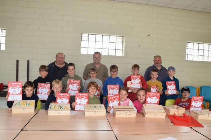 De voorbije weken werkten ze onder leiding van de techniekmentoren Geert Clarysse en Georges Desmadryl aan verschillende projecten. Zo maakten ze onder meer een funky escapebox en programmeerden ze met Lego Spike Prime. De kinderen brachten ook een bedrijfsbezoek aan bouwonderneming Catteeu, waar ze zelf de handen uit de mouwen mochten steken en een muurtje mochten metsen. Gemeenteraadslid Frederik Devloo overhandigde in naam van schepen van Jeugd Jan Deheegher, die verontschuldigd was, de diploma’s aan de jonge techneuten. (foto KVCL)