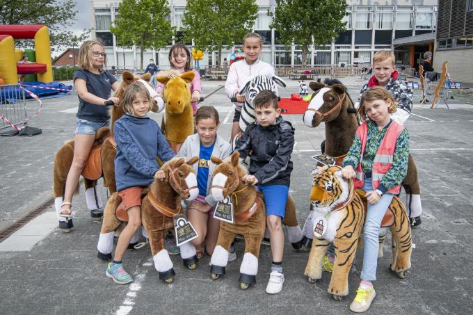 De leerkrachten, directie en leerlingen probeerden er dinsdag toch nog een feest te maken tijdens de laatste schooldag langs de Ieperstraat in Staden.