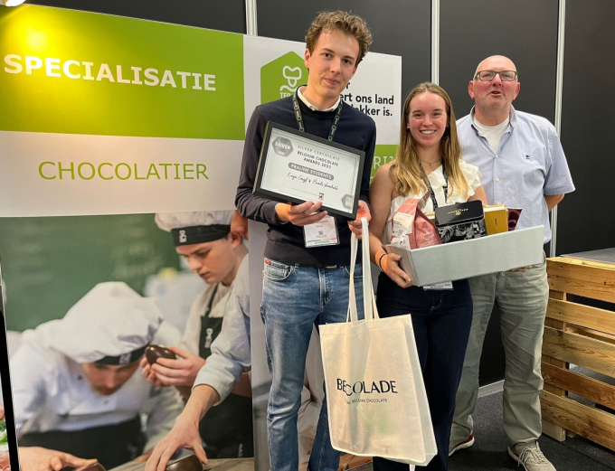 Op de beurs vond ook de wedstrijd Belgium Chocolate Awards, een organisatie van het vakblad Chocolaterie, plaats. In deze competitie werden de beste chocoladeproducten in vijf categorieën: Praline, Bean-to-Bar, relatiegeschenk, holgoed en White Label bekroond. Ook voor aanstormend talent was er een wedstrijd ‘Beste praline van het jaar’. Eryn Creyf en Basile Verschatse, twee leerlingen postsecundair bakkerij, behaalden zilver in deze categorie. Een welverdiende tweede plaats onder leiding van hun coach en leerkracht chocolaterie Wim Denduyver. De bronzen medaille ging naar de pas afgestudeerde Yana Volckaert. (PDC)