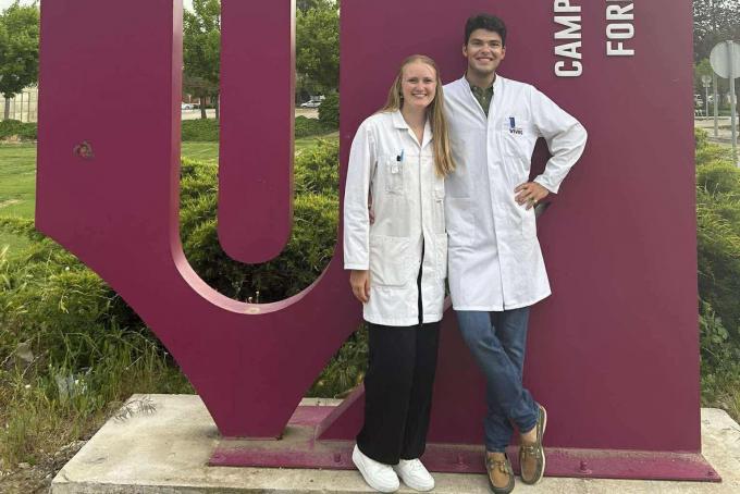 Mauro Derammelaere uit de Nachtegaalstraat en Delphine Boucquez uit Torhout werkten als laatstejaarsstudenten voedingstechnologie van de Vives Hogeschool in Roeselare mee aan labo-onderzoeken aan de Universiteit van Lleida in Spanje.