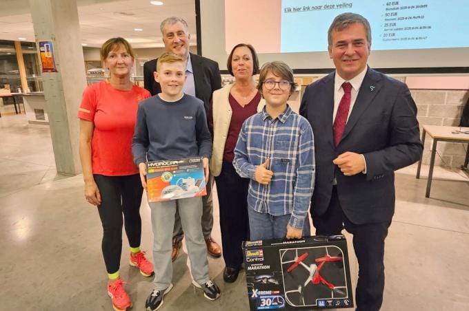 Tijdens de ‘Ontdek je Talent-week’ maakten leerlingen uit het zesde leerjaar op een speelse en uitdagende manier kennis met de school en de vele studierichtingen van VTI Roeselare. Alle bezoekers konden deelnemen aan een wedstrijd ‘Kies voor een toekomst vol STEM-talent!’ waarbij drie coole prijzen te winnen waren: een smart-house, een hydrocar en een drone. Uit alle deelnemers werden Miel, Thibo en Emiel als gelukkige winnaars geloot. De glimlach was groot toen Miel zijn drone en Thibo zijn hydrocar in ontvangst mochten nemen uit handen van burgemeester Kris Declercq. Emiel was jammer genoeg ziek tijdens het uitreikingsmoment, maar kreeg zijn smart-house later persoonlijk overhandigd. (RV/foto RV)